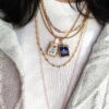 Nella seconda foto della scheda prodotto il ciondolo è inserito sul modello di collana “Make it yours! Collana base TORCHON SLIM – gold” insieme al ciondolo tessile “FARO NELLA NOTTE CHARM” ma puoi assolutamente sbizzarrirti con la fantasia: dai un’occhiata ai modelli basici di collana presenti sullo shop o lasciati ispirare dai gioielli già presenti nel tuo portagioie e crea tu il bijoux perfetto per te!