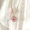 Catenina girocollo in acciaio inossidabile ed anallergico finitura oro con medaglietta tessile tonda profilata lurex e ricamata a motivo cuoricino in filato di cotone rosso su base di cotone color panna (cm 1,8 circa di diametro).