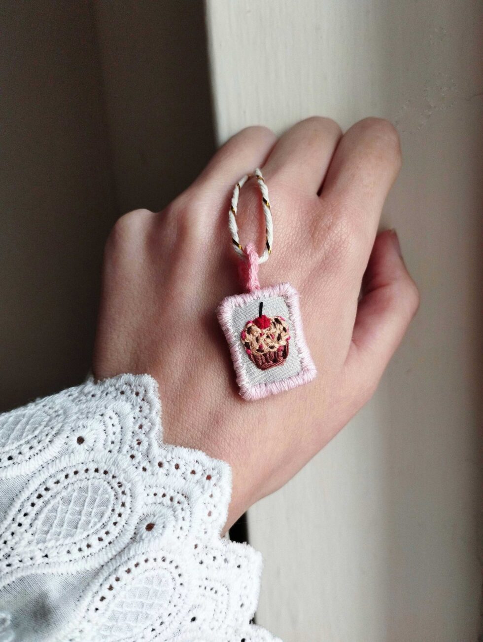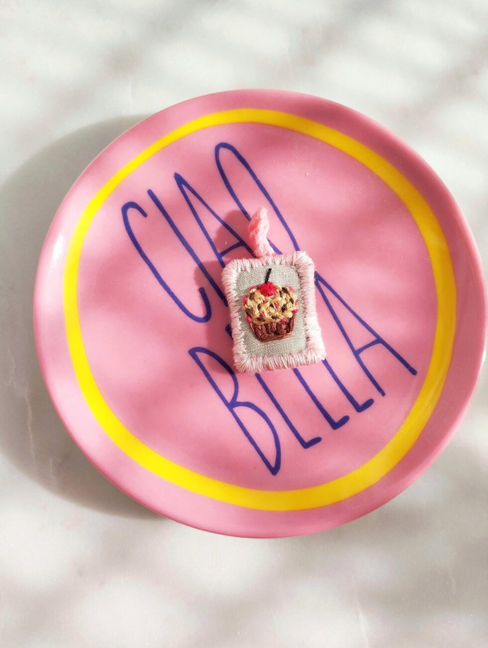 Foggia quadrata con ricamo a soggetto pasticcino.