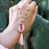 La collana base misura cm 60 circa di lunghezza ed è dotata di catenella regolabile per allungarne ulteriormente l’estensione di 5 cm.