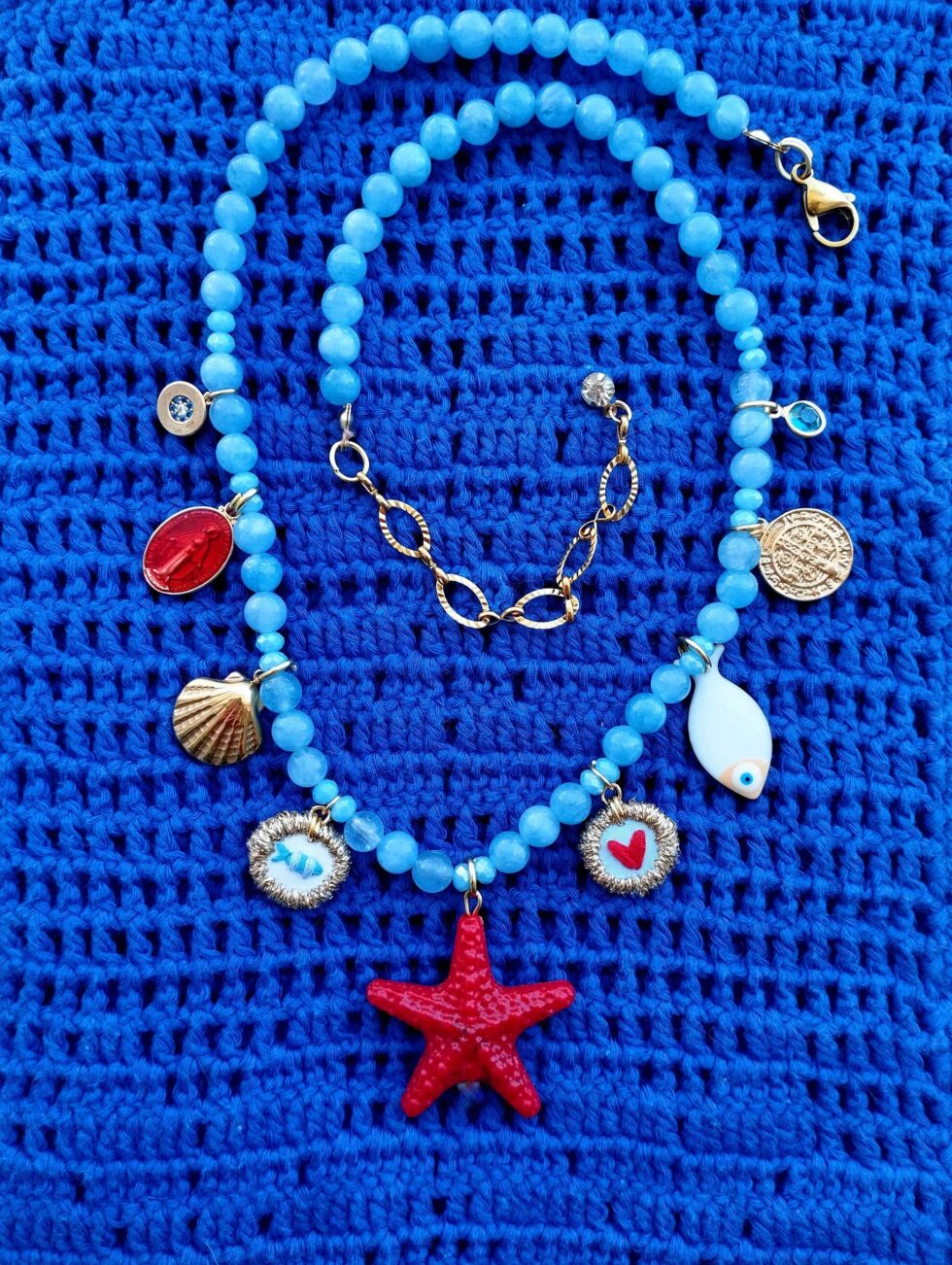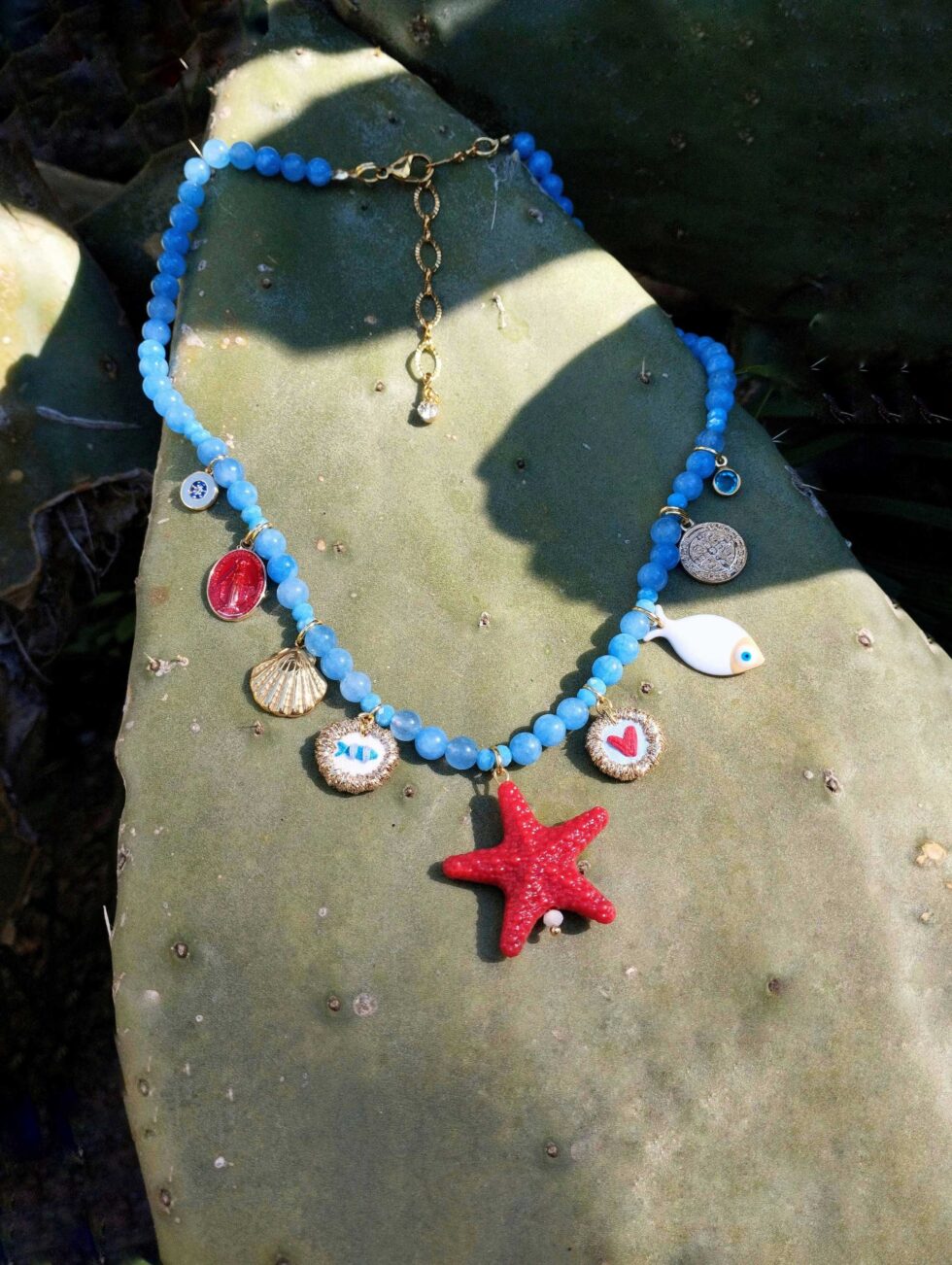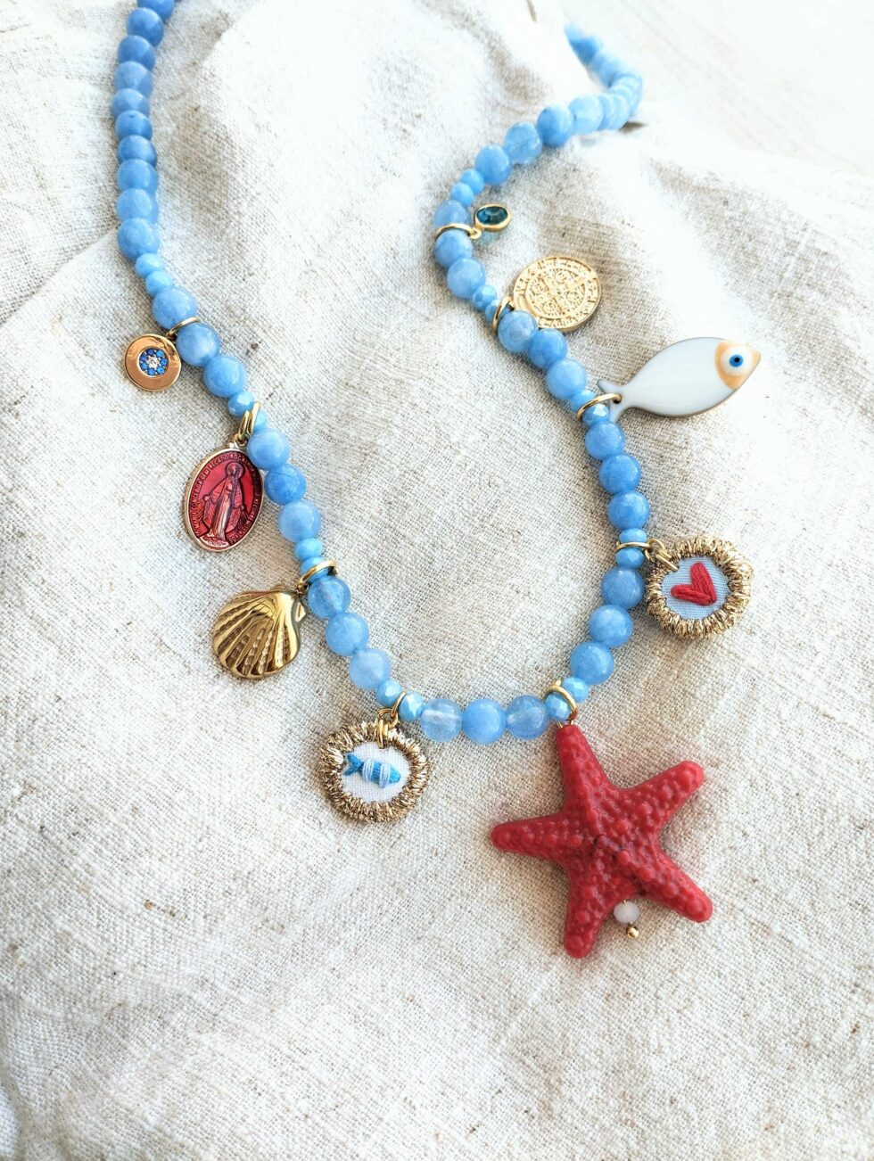 “COLLEZIONE ESTIVA” – collana in agata azzurra “Stella Marina”