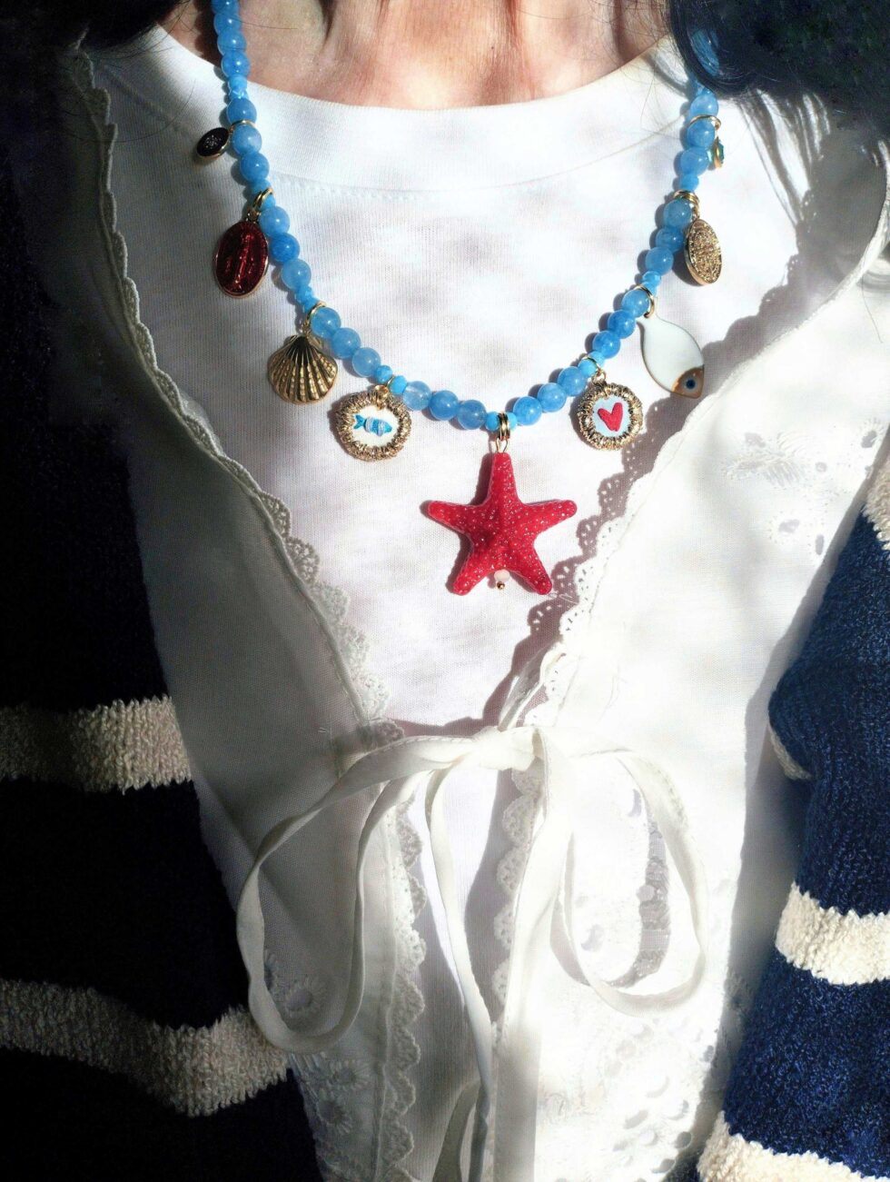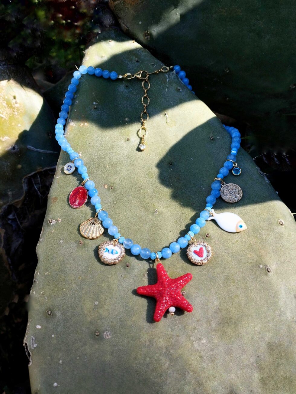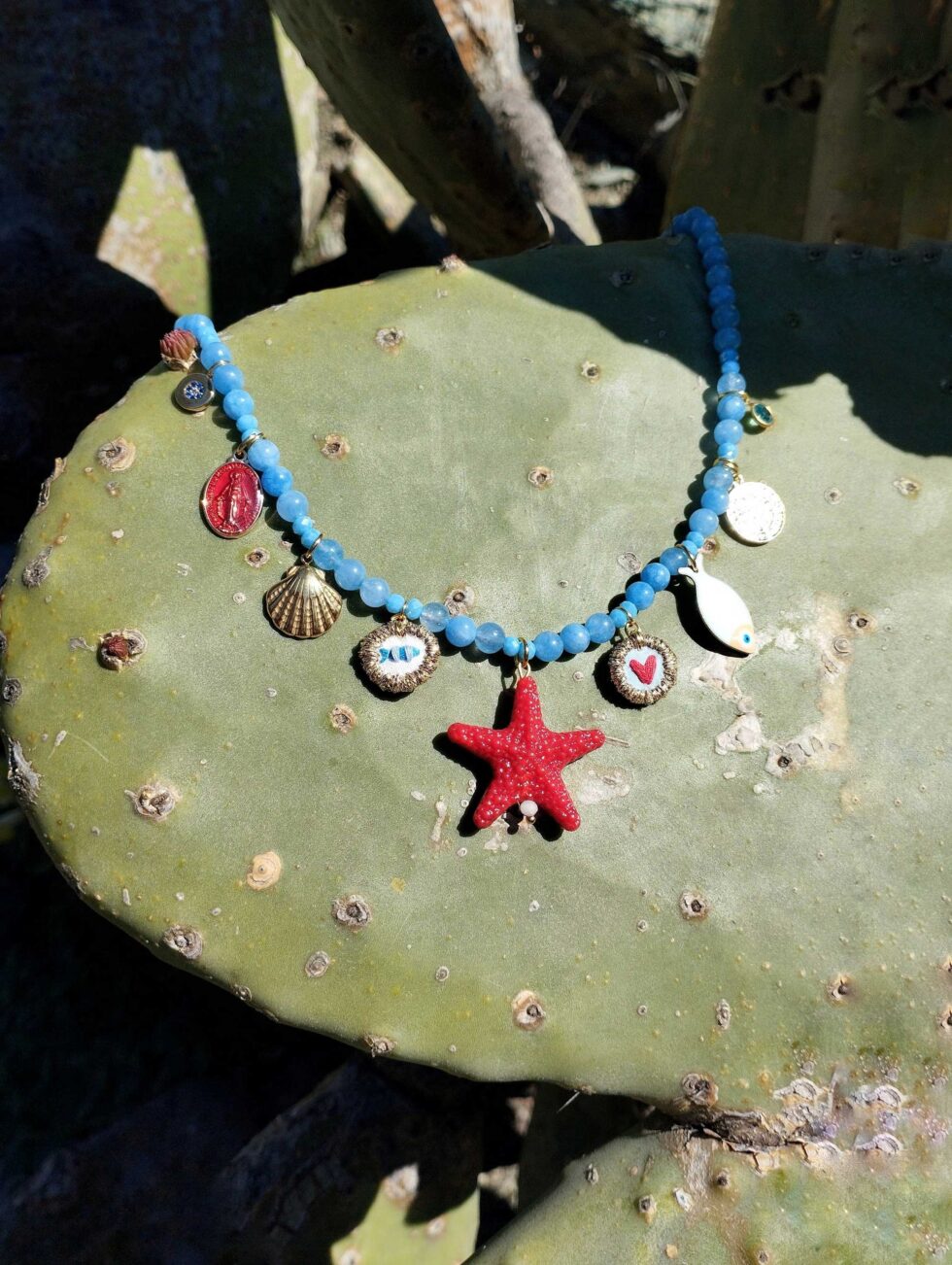 “COLLEZIONE ESTIVA” – collana in agata azzurra “Stella Marina”