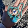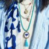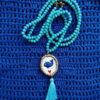 Collana lunghezza a mezzo busto in cristalli continui di colore turchese con chiusura in acciaio inossidabile ed anallergico finitura oro.