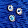 Pendente tessile profilato lurex a foggia di ovale (cm 3 circa di altezza per 2,5 di larghezza nel punto di massima estensione) con ricamo medusa su fondo in cotone bianco panna e profilatura lurex.
