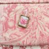 Ciondolo in tessuto di cotone di colore bianco panna dotato di un gancino in asola in nastro di raso rosa sufficientemente grande per far scorrere un moschettone di medie dimensioni.