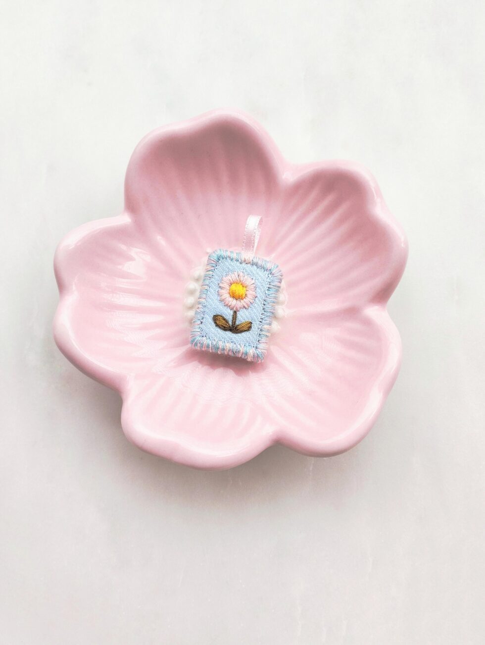Foggia rettangolare con ricamo a soggetto margheritina.