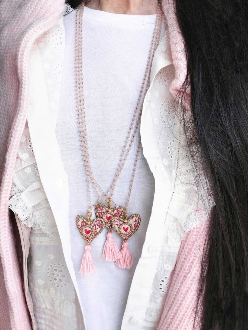 “MY MINI HEART ” – collana lunga Cuore – nappina rosa freddo
