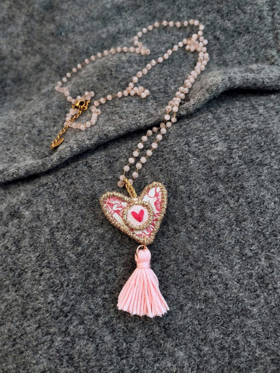 Recensisci per primo "“MY MINI HEART ” – collana lunga Cuore – nappina rosa freddo"