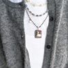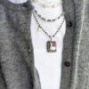 La collana base misura cm 48 di lunghezza ed è dotata di catenella regolabile per allungarne ulteriormente l’estensione di 5 cm.