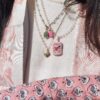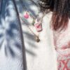 Charm cuoricino obliquo in acciaio smaltato fucsia laterale.