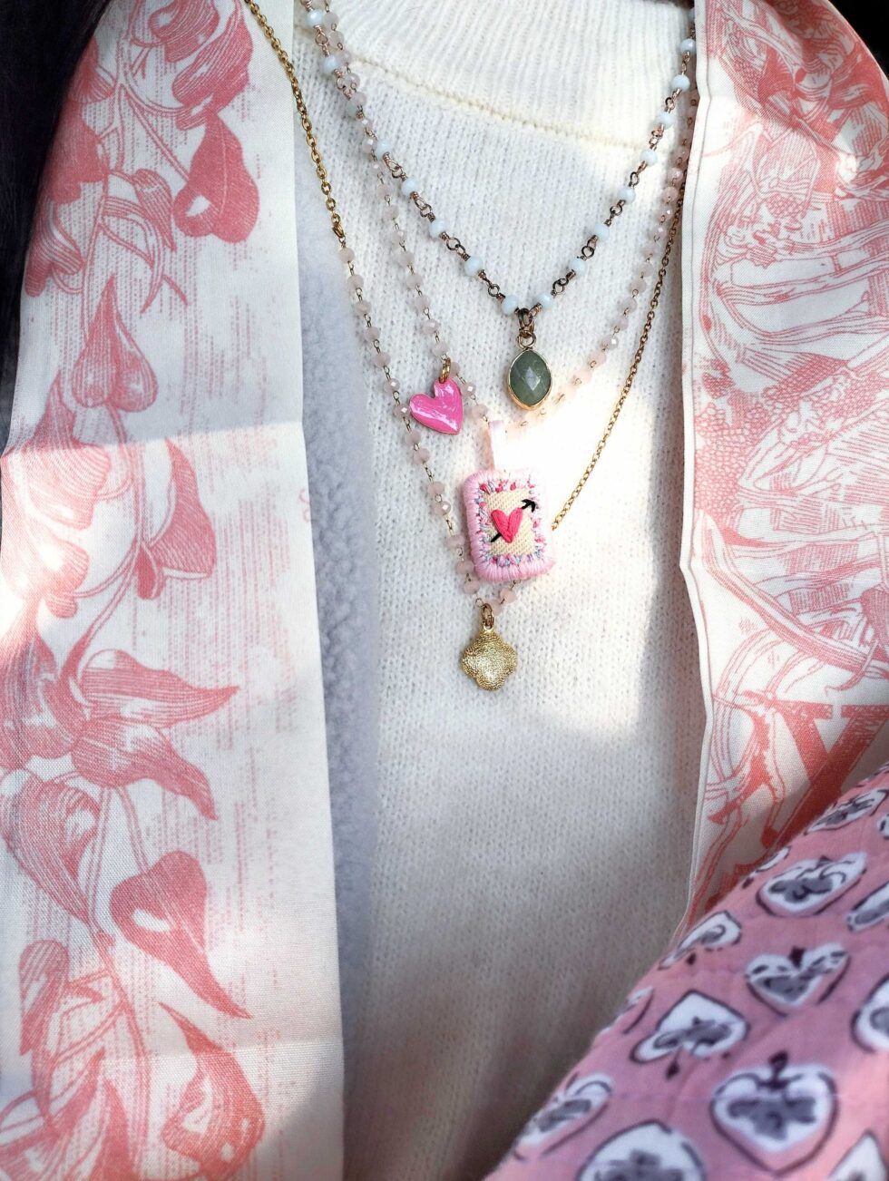 La collana base misura cm 48 di lunghezza ed è dotata di catenella regolabile per allungarne ulteriormente l’estensione di 5 cm.