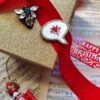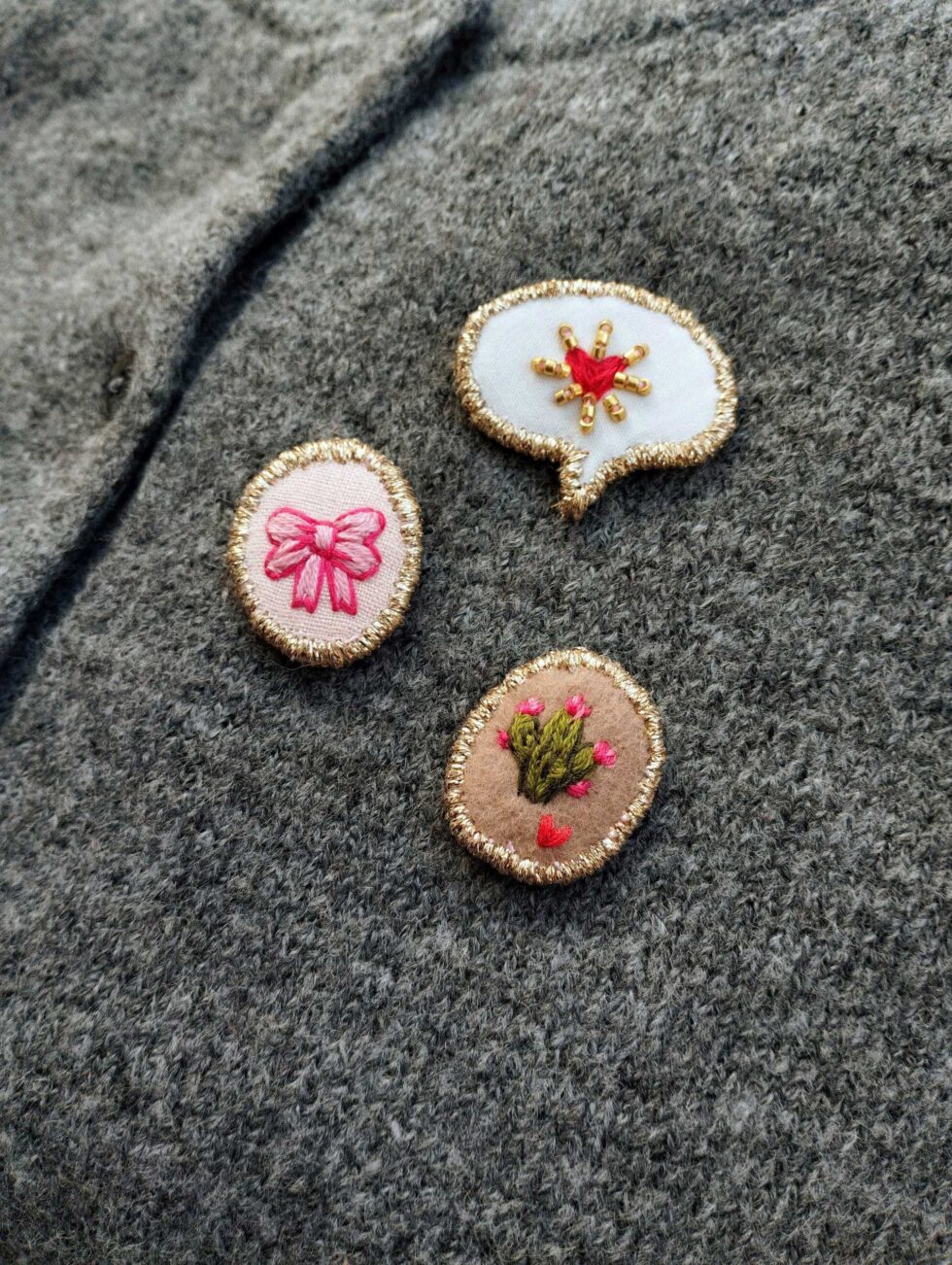 La pratica chiusura ad ago cucita sul retro, costituita da ottone anallergico finitura dorata, consente di appuntare la spilla su giacche, cappotti, borse o pochette in tessuto, cappelli e ovunque ti suggerisca la tua fantasia per rendere ogni tuo look originale e sbarazzino.